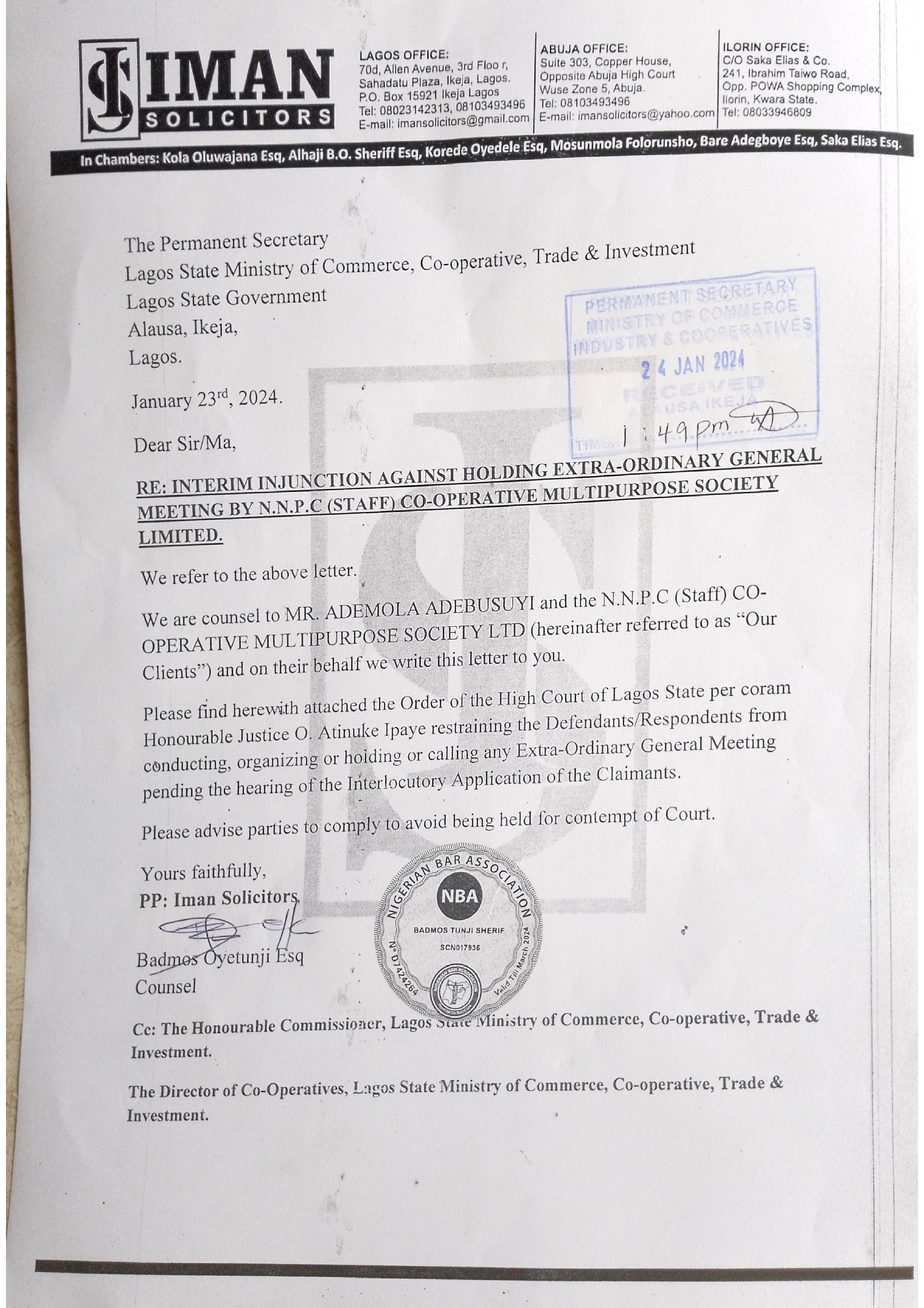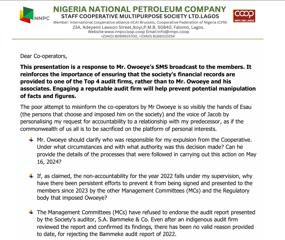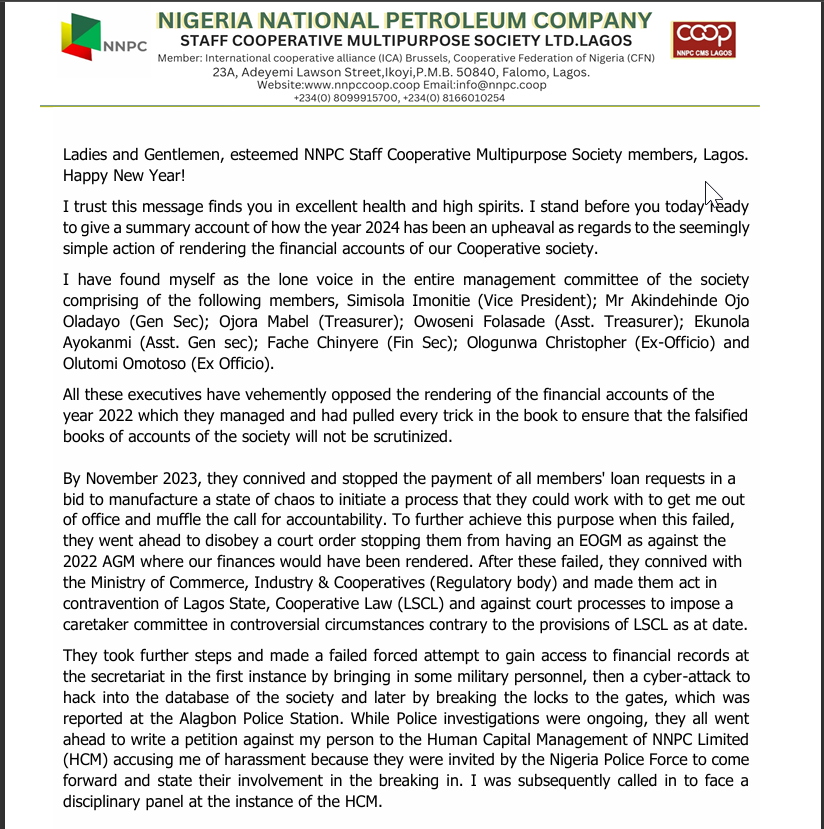 NNPC Staff Cooperative Multipurpose Society Limited is registered under the Cooperative Law of Lagos State and was founded in 1979 with the sole objective of providing quality and efficient services to her members, anchored on improving their economic and social well being.